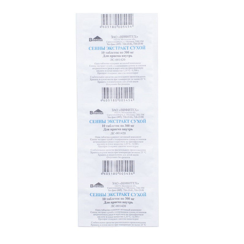 Сенны экстракт сухой 300 мг 10 шт таблетки