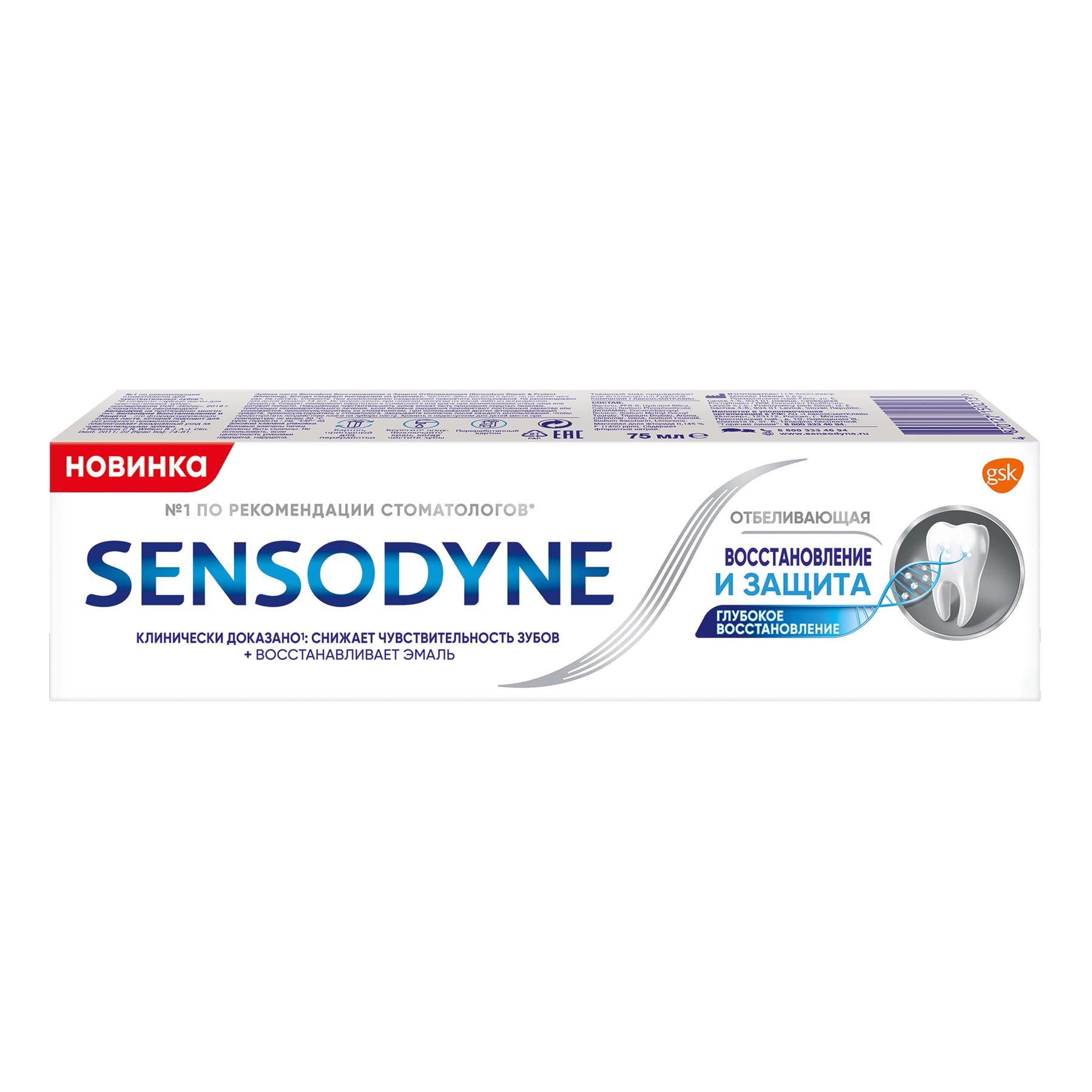 Зубная паста Sensodyne Восстановление и Защита - это сочетание уникальной технологии NovaMin и фторида.