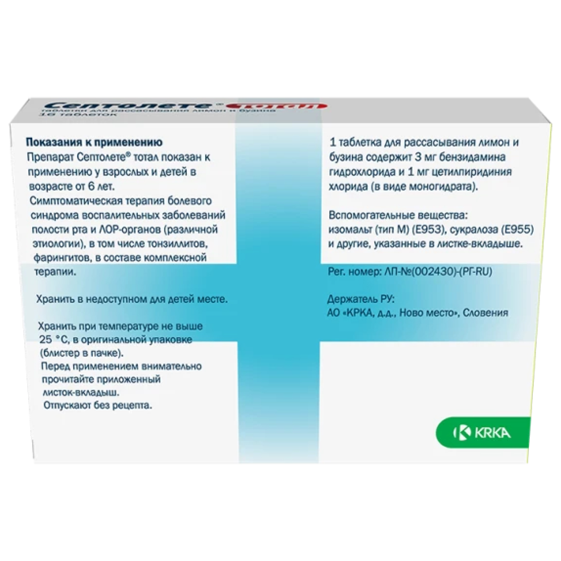 Сертификаты и лицензии “Септолете Тотал 16 шт таблетки для рассасывания бузина-лимон”