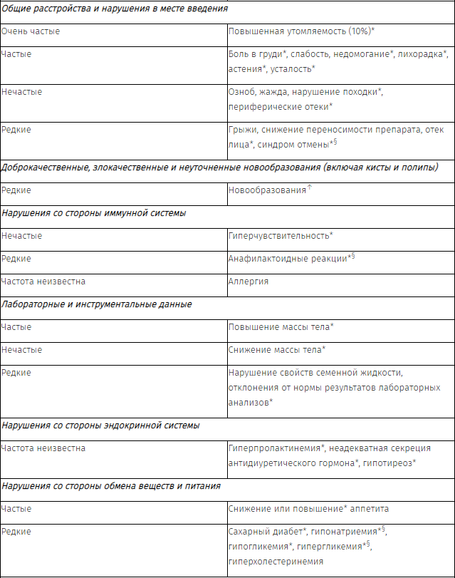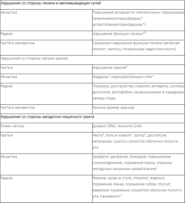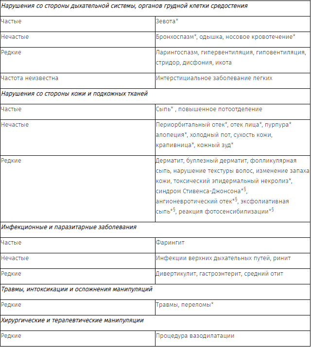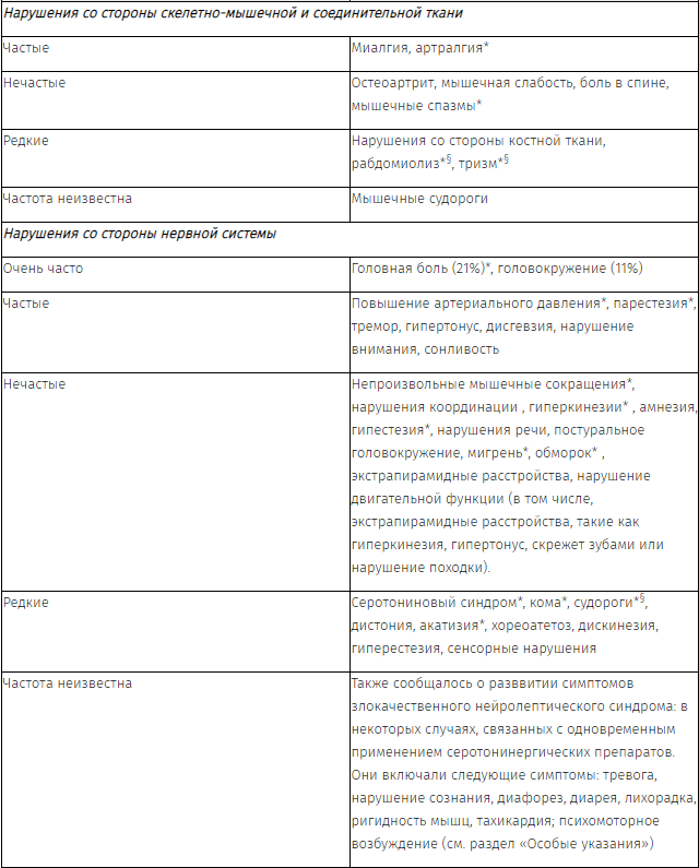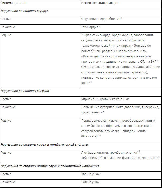 § частота данных побочных эффектов ранжирована по верхней границе 95%-го доверительного интервала.