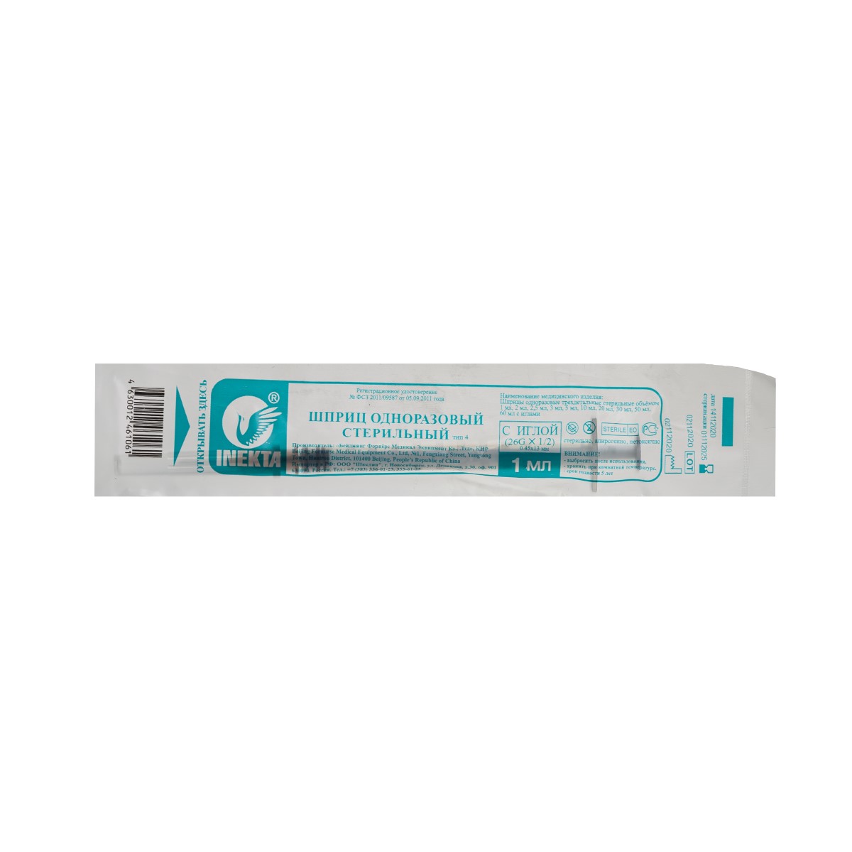 Шприц 1 мл инсулиновый одноразовый трехкомпонентный стерильный с иглой 0,45х13мм (26G*1/2').