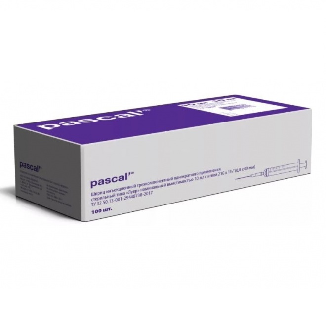 Pascal 10 мл 100 шт шприц одноразовый 3-х компонентный игла 21G (0,8 мм х 40 мм) ⭐ купить в онлайн-аптеке Таблетка.ру (Ваша №1) | Москва и Московская область