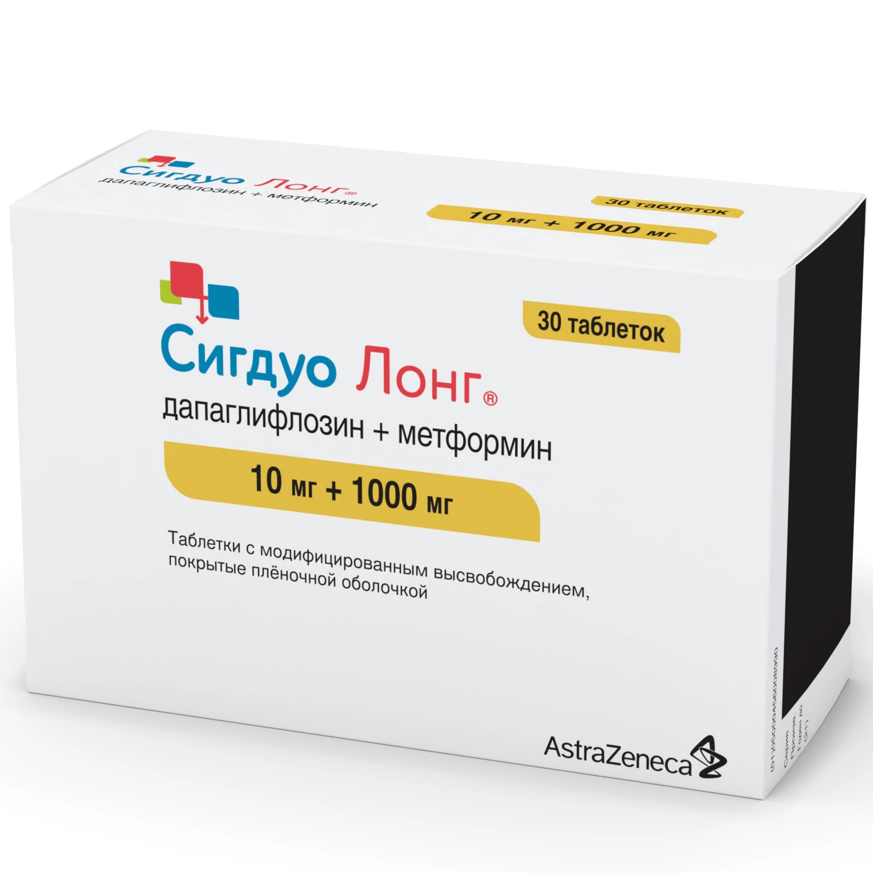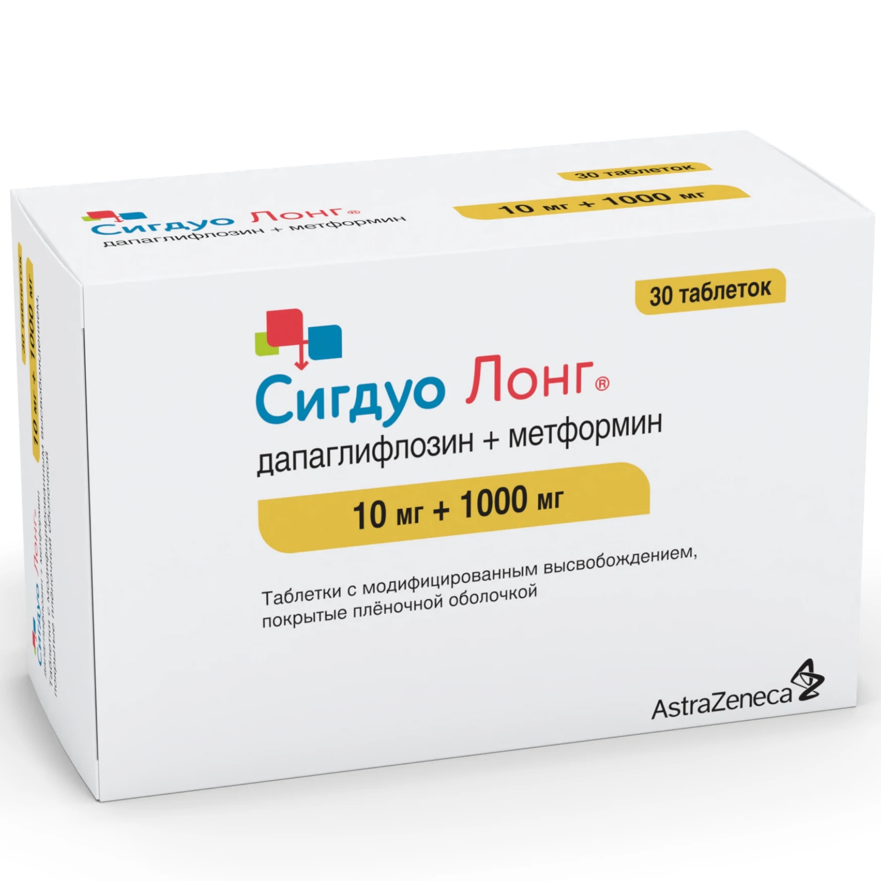Сигдуо Лонг®, 10 мг + 1000 мг, таблетки с модифицированным высвобождением, покрытые пленочной оболочкой