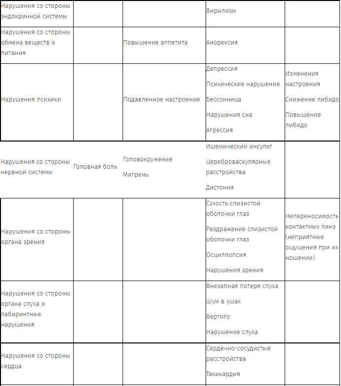 Ниже перечислены нежелательные реакции с очень низкой частотой возникновения или с отсроченным развитием симптомов, которые считаются связанными с группой КОК (см. также разделы "Противопоказания", "Особые указания"):