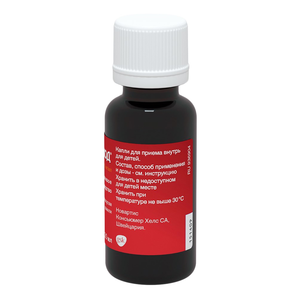Вспомогательные вещества - сорбитола раствор 70 % м/м 405 мг, глицерол 290 мг, натрия сахаринат 1,15 мг, бензойная кислота 1,15 мг, ванилин 1,15 мг, этанол 96 % об/об. 3 мг, натрия гидроксид 30 % м/м 0,5 мг, вода до 1 мл.