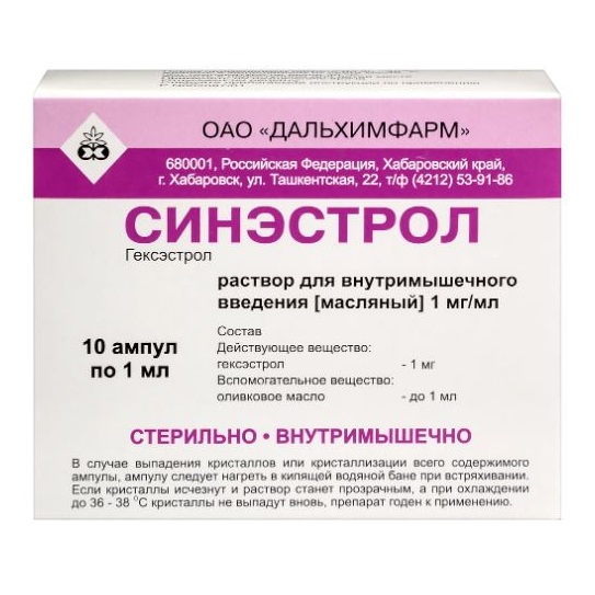 Максимальная разовая доза препарата - 0,06 г (3 мл раствора препарата Синэстрол в дозе 20 мг/мл); максимальная суточная доза препарата (5 мл препарата Синэстрол в дозе 20 мг/мл).