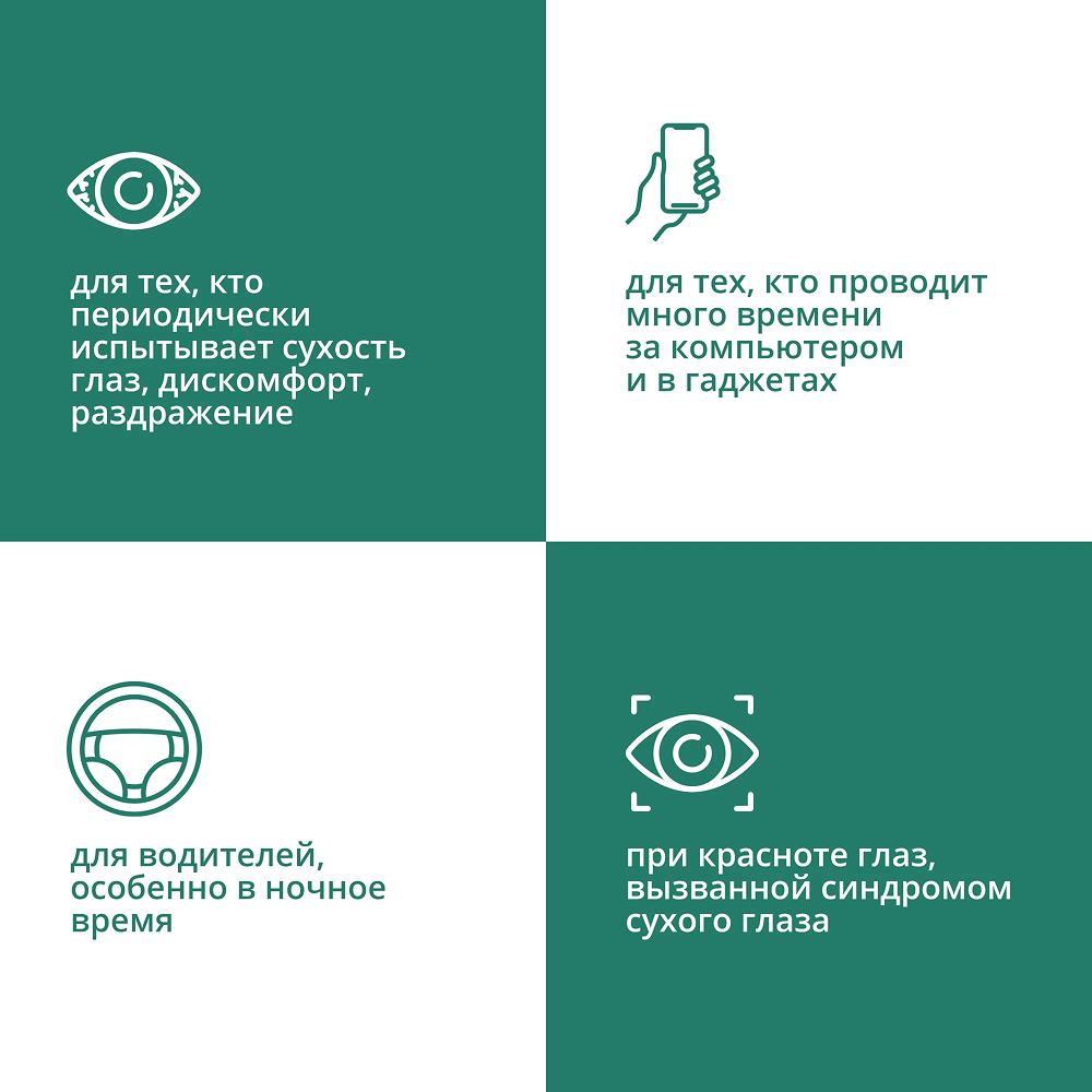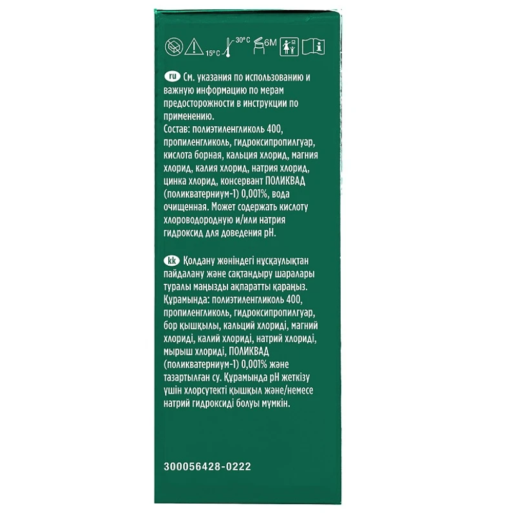 При продолжающемся дискомфорте, слезотечении, изменении зрения, покраснении глаз, пожалуйста, проконсультируйтесь с врачом. Не используйте раствор более б месяцев после первого вскрытия флакона.