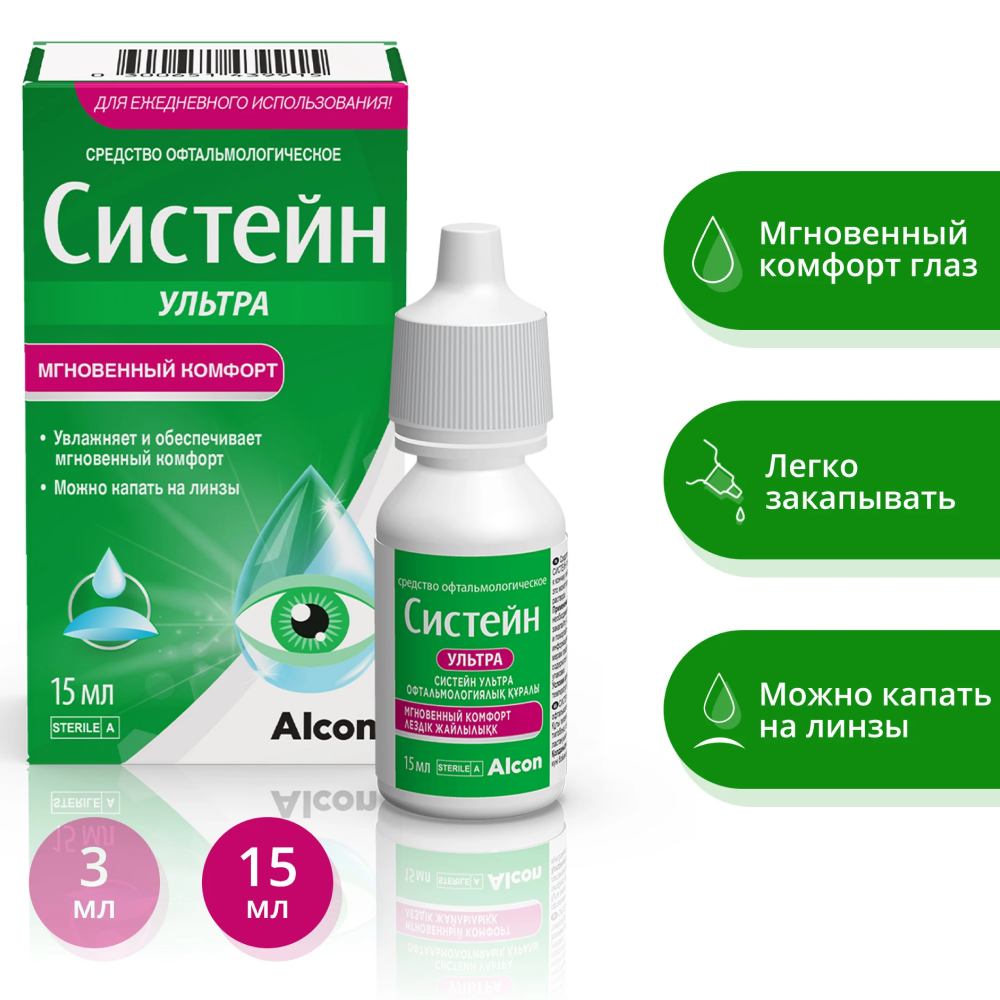 Продолжительная защита также означает, что и комфорт для глаз сохраняется дольше. Систейн Ультра обеспечивает временное облегчение симптомов.