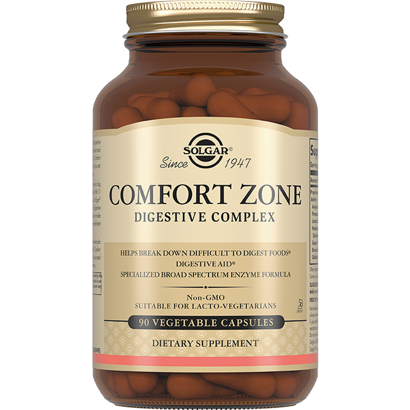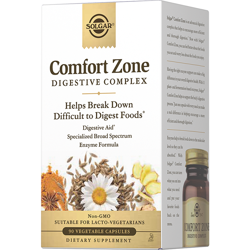 Капсулы «Комфорт зон» рекомендуются в качестве биологически активной добавки к пище - источника пищеварительных ферментов. Получайте удовольствие от любимых блюд, не испытывая симптомы недостаточного пищеварения, благодаря многокомпонентному сбалансированному составу «Комфорт Зон». Входящие в состав комплекса ферменты (амилаза, пектиназа/фитаза, инвертаза, мальтаза, альфагалактозидаза, целлюлаза) способствуют предотвращению процессов брожения и проявления метеоризма. Лактаза позволяет уменьшить симптомы непереносимости молочных продуктов, таких как жидкий стул, вздутие, болезненные спазмы в области кишечника. Протеазы, бромелайн (экстракт ананаса) и папаин предотвращают адгезию вредных бактерий к слизистой оболочке кишечника, а липаза позволяет устранить ощущение тяжести и переполнения желудка. В комплекс добавлены также растительные экстракты тмина, фенхеля и ромашки.