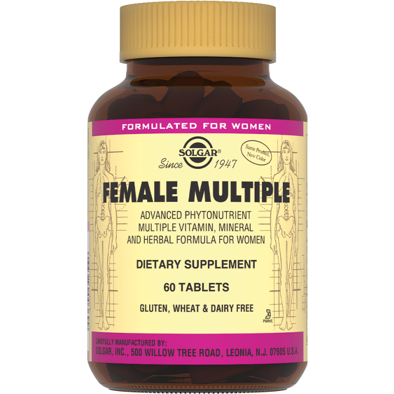 Solgar Female Multiple – это комплекс витаминов и минералов, разработанный специально для женщин с учетом потребностей и особенностей женского организма. Данный комплекс полностью покрывает суточную норму в дозировках основных питательных микроэлементов, которые необходимы ежедневно для сохранения здоровья и правильного функционирования женского организма.
