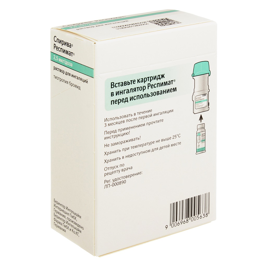 Спирива Респимат, как и другие м-холиноблокирующие средства, должен применяться с осторожностью у больных с закрытоугольной глаукомой, гиперплазией предстательной железы или обструкцией шейки мочевого пузыря.