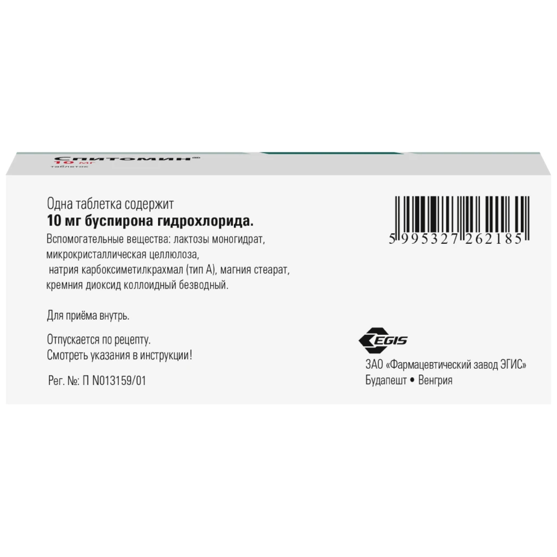 Ингибиторы МАО: описано повышение АД и возникновение гипертонических кризов после одновременного введения буспирона и препаратов, действующих на МАО (моклобемид, селегилин); в связи с этим буспирон нельзя сочетать с ингибиторами МАО. После отмены необратимого ингибитора МАО (например, селегилина) до начала введения препарата Спитомин® (и наоборот) должно пройти не менее 14 дней. Аналогичным образом, должно пройти не менее 14 дней после отмены препарата Спитомин® до начала введения моклобемида (обратимый ингибитор МАО). Однако Спитомин® можно принимать через 1 день после отмены моклобемида.
