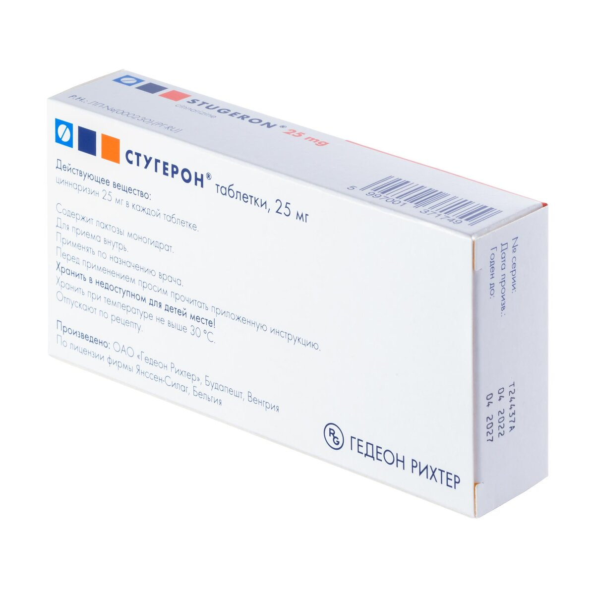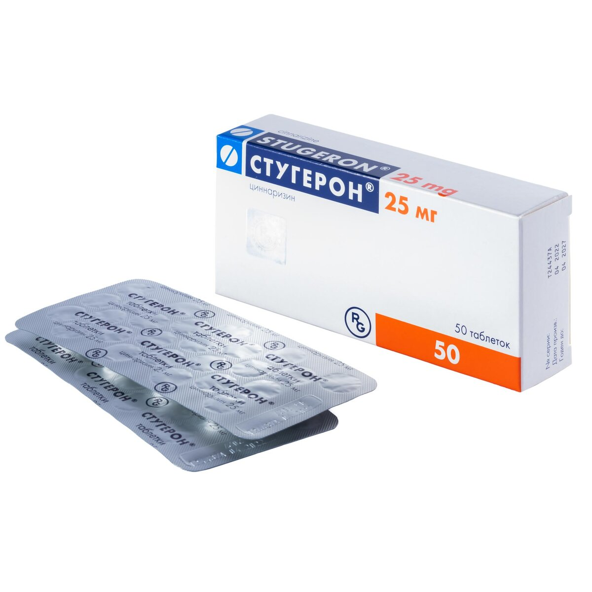Активное вещество: циннаризин 25 мг.