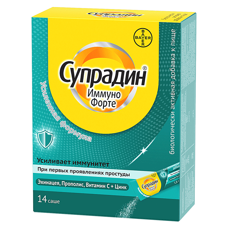 Наполнители маннит и сорбит, комплекс экстракта эхинацеи (экстракт корней и надземной части эхинацеи, мальтодекстрин), сухой экстракт прополиса (экстракт прополиса, мальтодекстрин, носитель кремния диоксид), аскорбиновая кислота (витамин С), ароматизатор апельсиновый (загуститель гуммиарабик, антиокислители аскорбиновая кислота и бутилгидроксианизол, вкусоароматические вещества, натуральные вкусоароматические вещества, мальтодекстрин), цинка лактат тригидрат, антиокислитель лимонная кислота, подсластители: аспартам, сукралоза, ацесульфам калия.