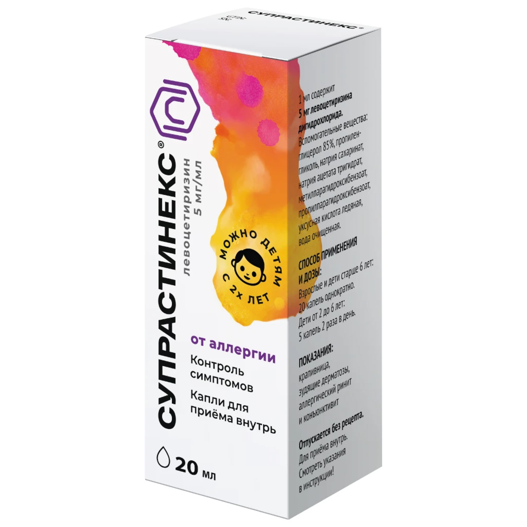 Препарат Супрастинекс® в каплях противопоказан детям в возрасте до 2 лет из-за отсутствия клинических данных.