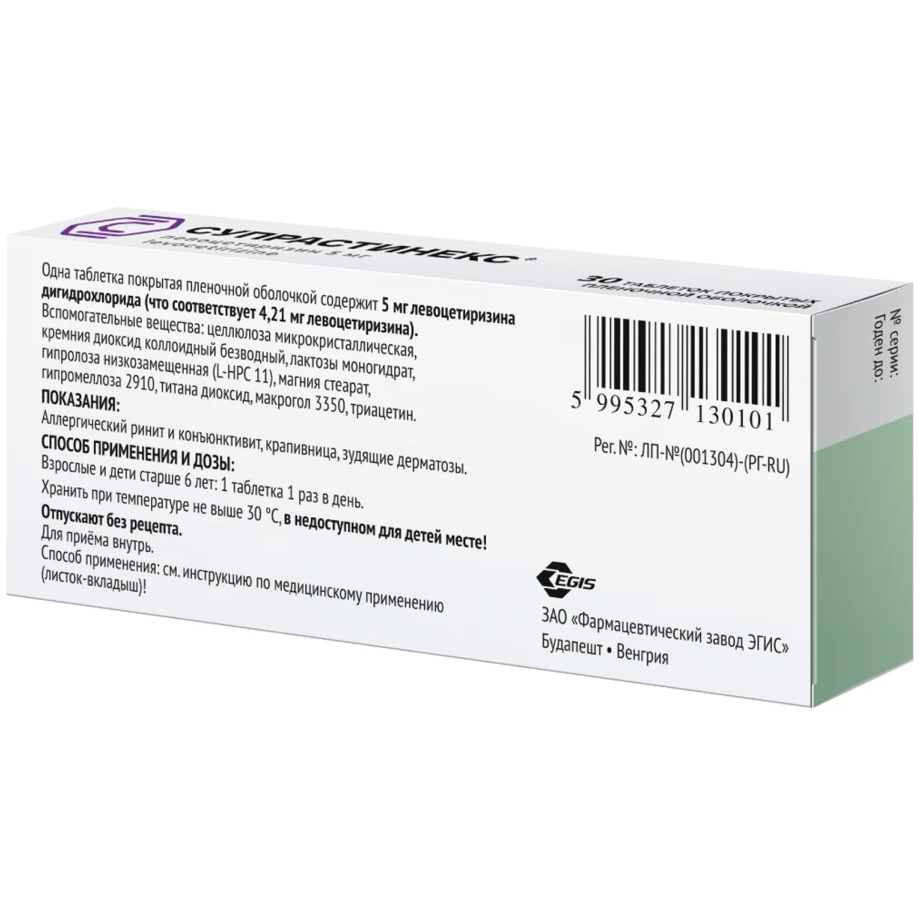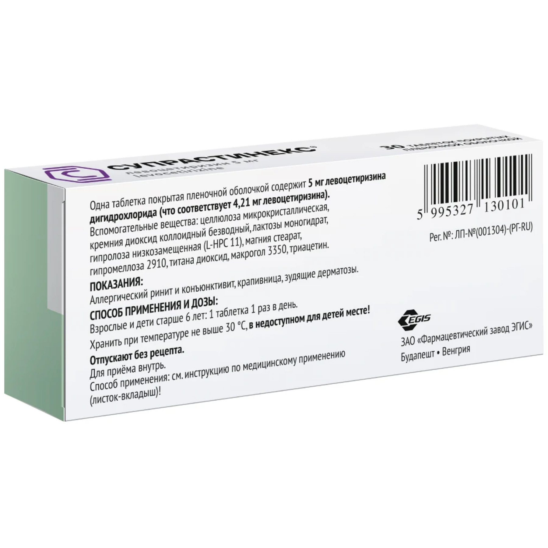 Фармакокинетические параметры левоцетиризина изменяются линейно и практически не отличаются от фармакокинетики цитиризина.