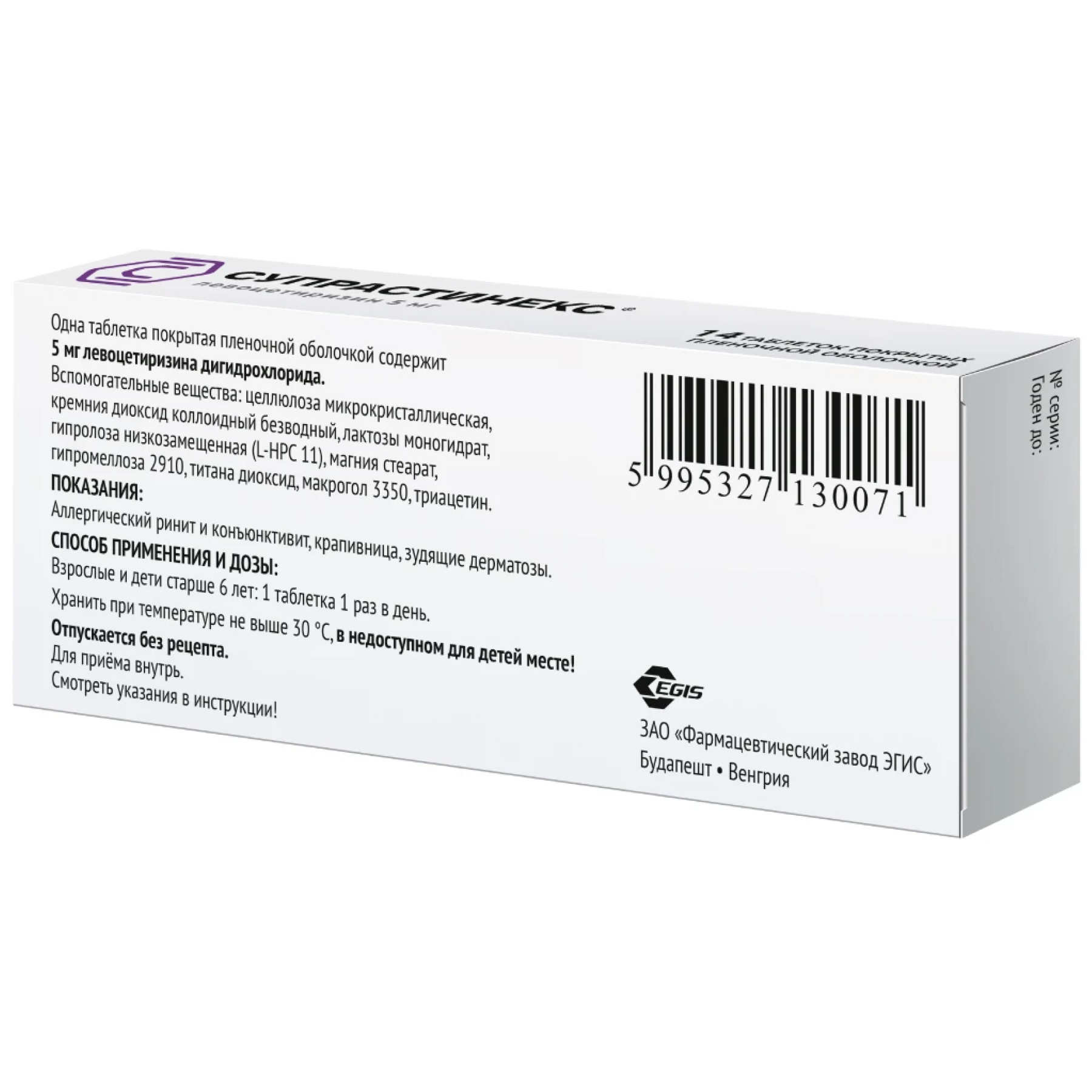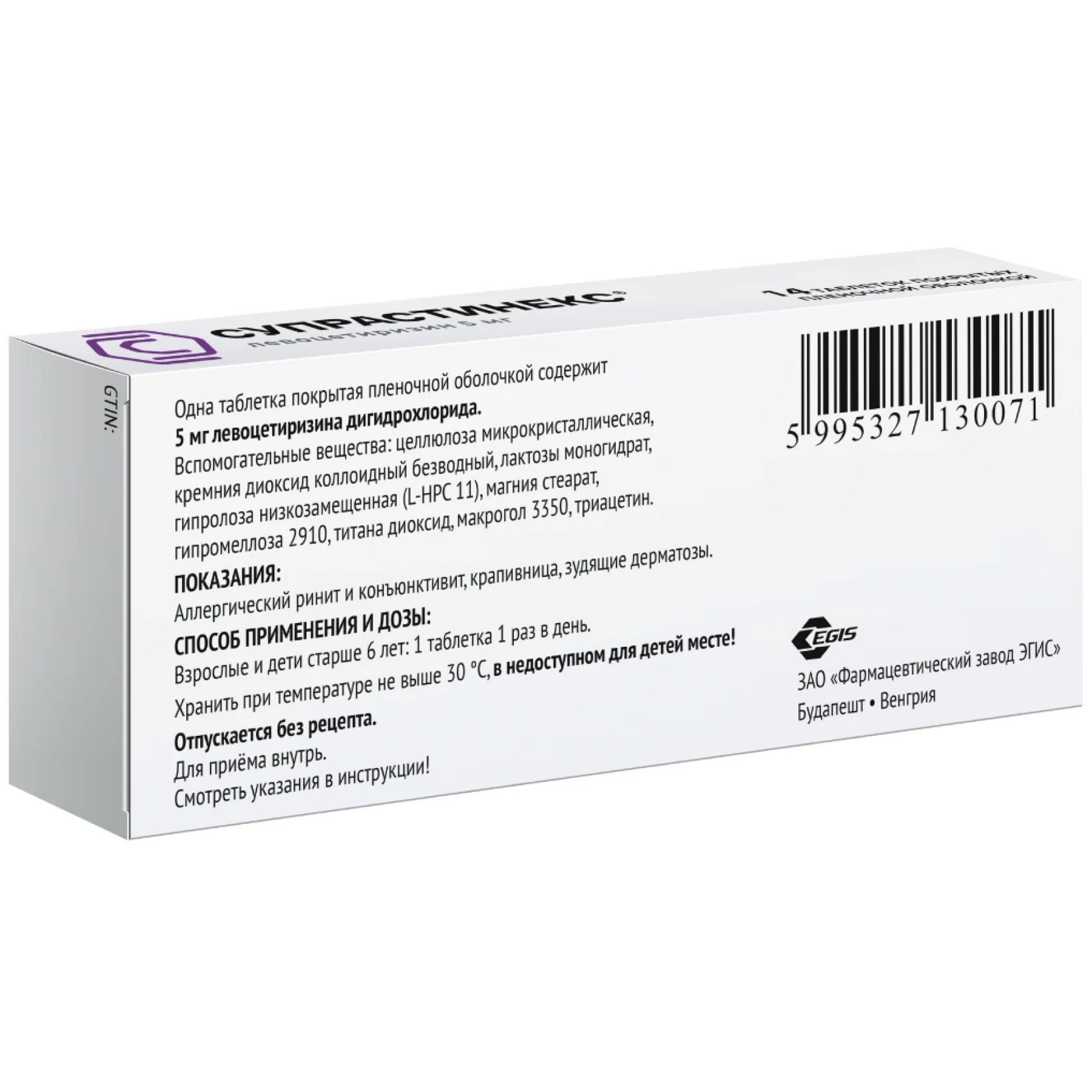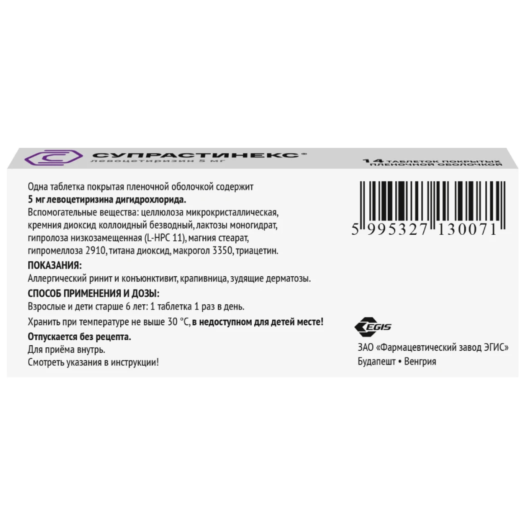 Фармакокинетические параметры левоцетиризина изменяются линейно и практически не отличаются от фармакокинетики цитиризина.