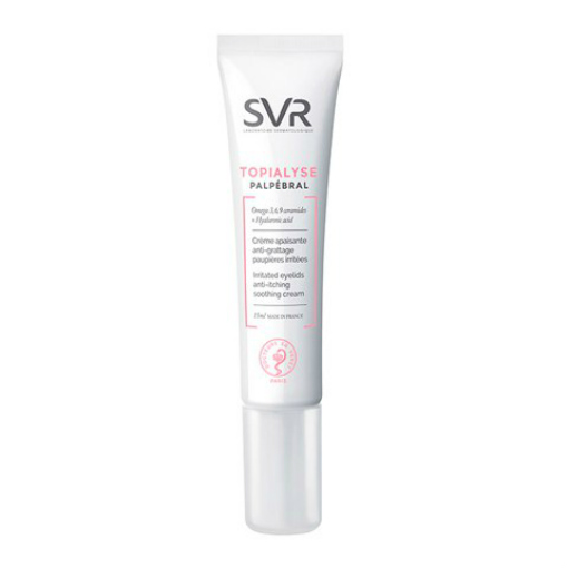 Отличное средство для ухода за сухой и очень сухой, склонной к атопии кожи вокруг глаз – SVR Topialyse Palpebral. Благодаря высокой концентрации активных компонентов (20%) крем оказывает сразу 4 эффекта: