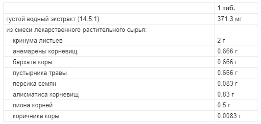 Таблетки, покрытые пленочной оболочкой коричневого цвета, двояковыпуклые, овальной формы, с фаской; ядро коричневого цвета, на разрезе коричневого цвета с многочисленными мелкими желтыми вкраплениями.