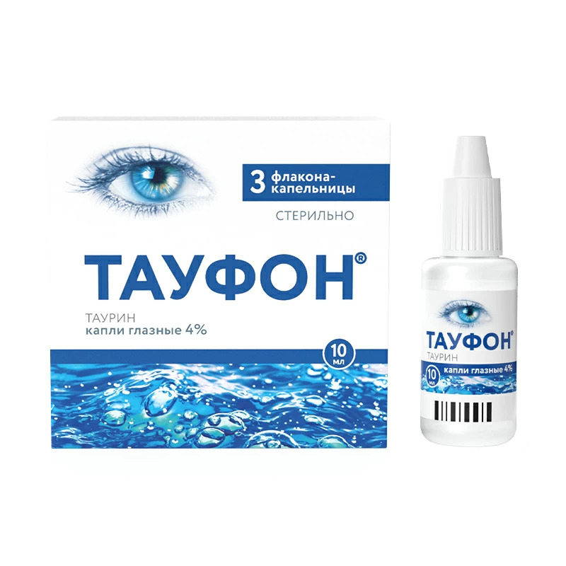 Противокатарактное средство, оказывает метаболическое действие. Таурин является серосодержащей аминокислотой, образующейся в организме в процессе превращения цистеина. Стимулирует процессы репарации и регенерации при заболеваниях дистрофического характера и заболеваниях, сопровождающихся резким нарушением метаболизма глазных тканей.