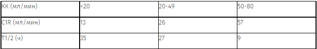 Режим дозирования у пациентов с нарушением функции почек (КК <50 мл/мин)