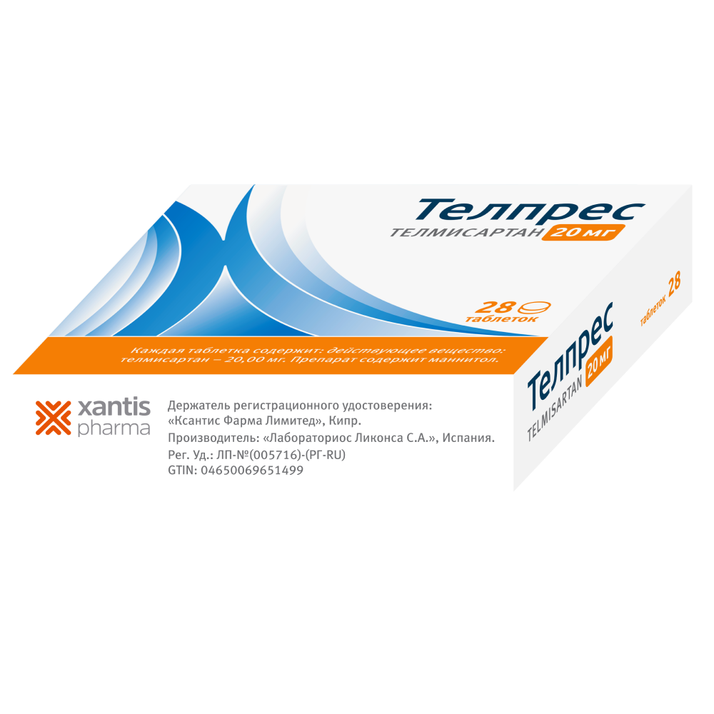 Для взрослых суточная доза составляет 20-40 мг (1 раз/сут). У некоторых пациентов гипотензивный эффект может быть достигнут при дозе 20 мг/сут. В случаях, когда терапевтический эффект не достигается, максимальная рекомендованная доза препарата Телпрес может быть увеличена до 80 мг один раз в сутки. При решении вопроса об увеличении дозы следует принимать во внимание, что максимальный антигипертензивный эффект обычно достигается в течение 4-8 недель после начала лечения.