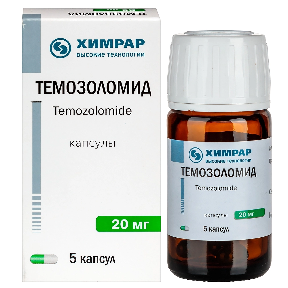 Каждая твердая капсула содержит 20 мг темозоломида.