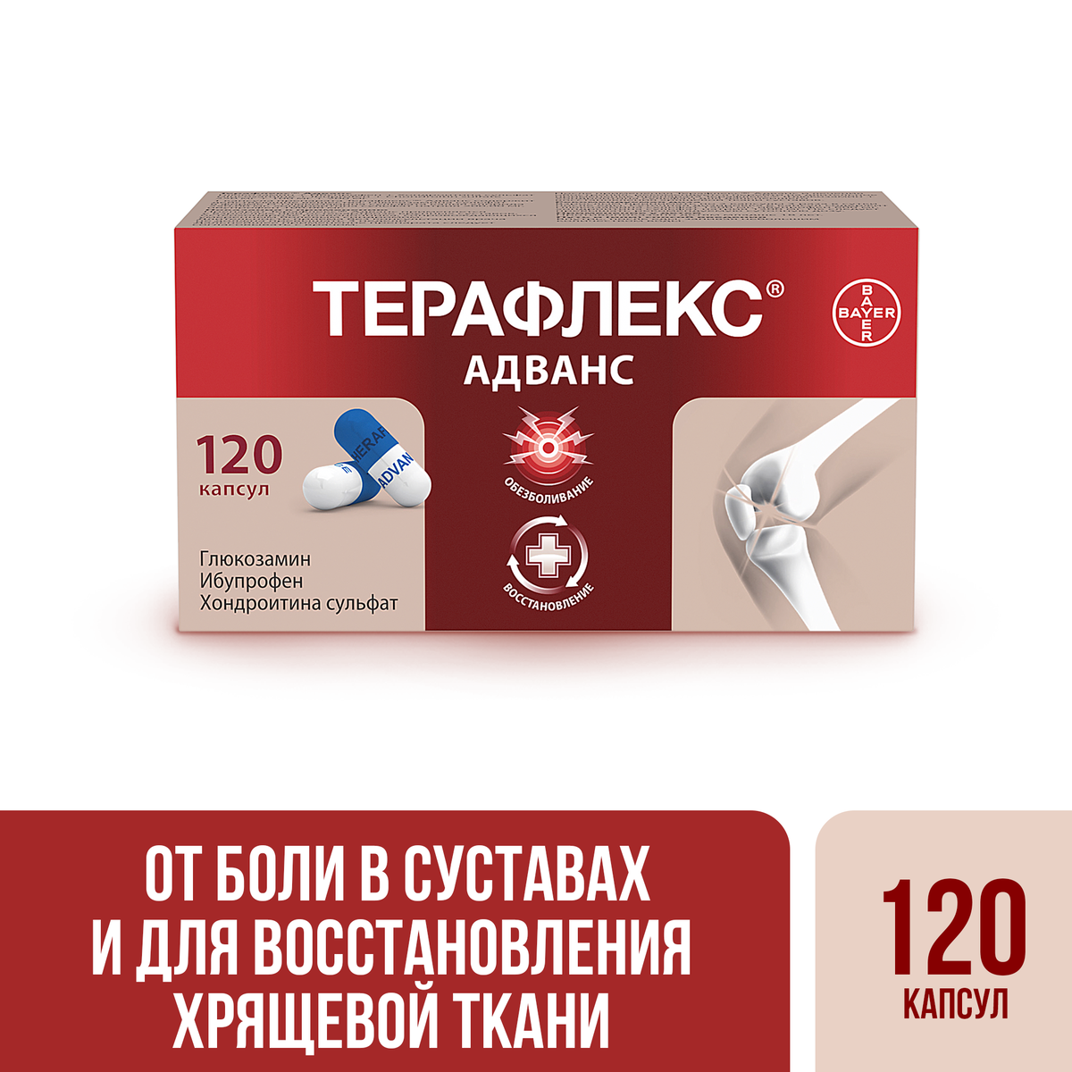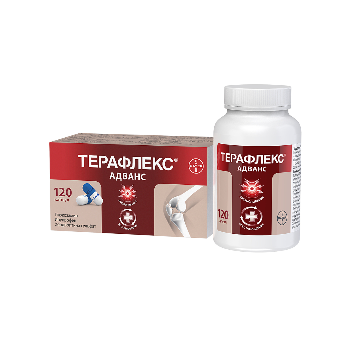 Терафлекс® Адванс представляет собой комбинированный препарат, содержащий в качестве активных компонентов хондроитина сульфат, глюкозамина сульфат и ибупрофен.