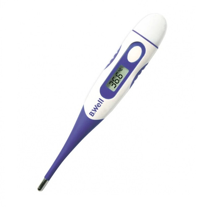 Термометр B.Well WT-04 standart удобно держать, благодаря специальным противоскользящим вставкам на корпусе, а гибкий наконечник гарантирует мягкое прикосновение к коже. Корпус термометра водонепроницаемый и противоударный. Время измерения составляет всего 30 секунд. Прибор оснащен такими дополнительными функциями как звуковой сигнал окончания измерения и тревожный сигнал при повышенной температуре, автоматическое отключение, память последнего измерения.