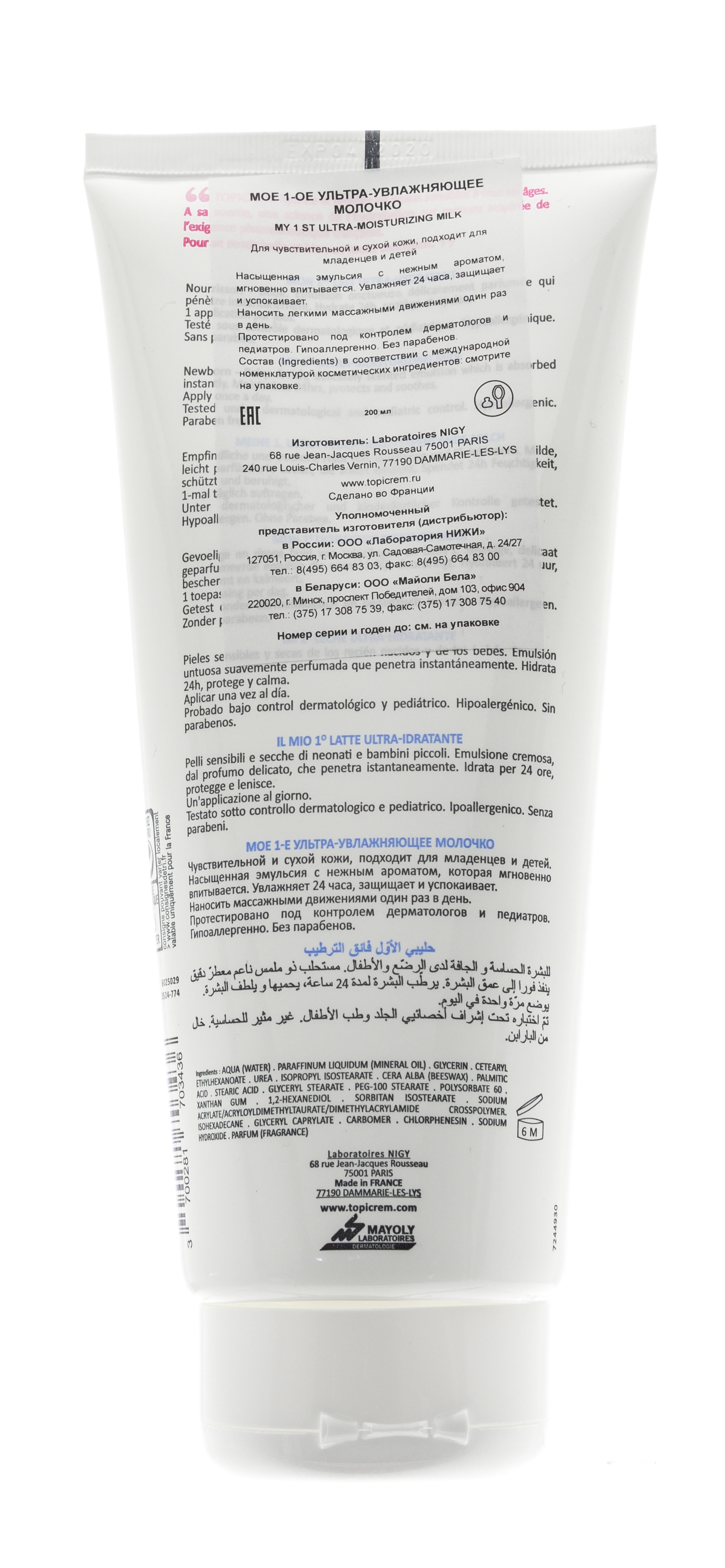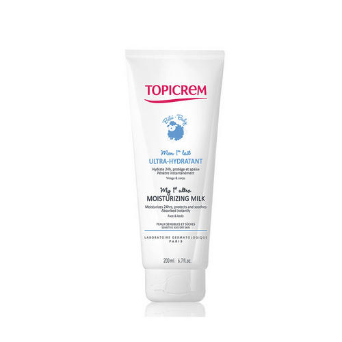 Формула ультраувлажняющего молочка Топикрем прекрасно переносится даже нежной и чувствительной кожей детей с первых дней жизни. Продукт обладает кремовой текстурой, мгновенно впитывается, не оставляет жирной или липкой пленки. Ухаживающие компоненты глубоко увлажняют и дарят коже комфорт. Topicrem My 1st Ultra Moisturizing Milk окутывает нежным ароматом, который нравится детям. Высокая переносимость средства доказана в результате дерматологических и педиатрических тестов.