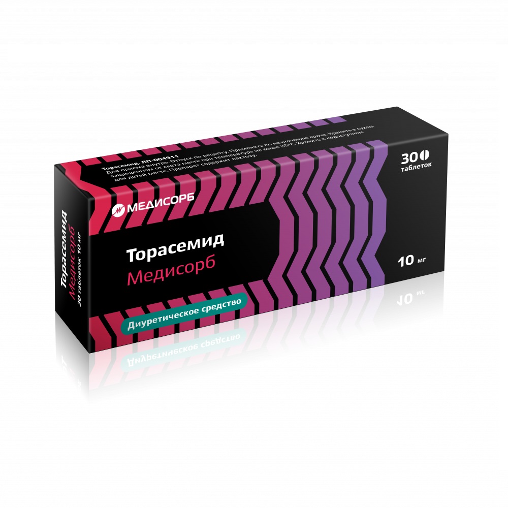 Действующее вещество: торасемид 5,0 мг или 10,0 мг;