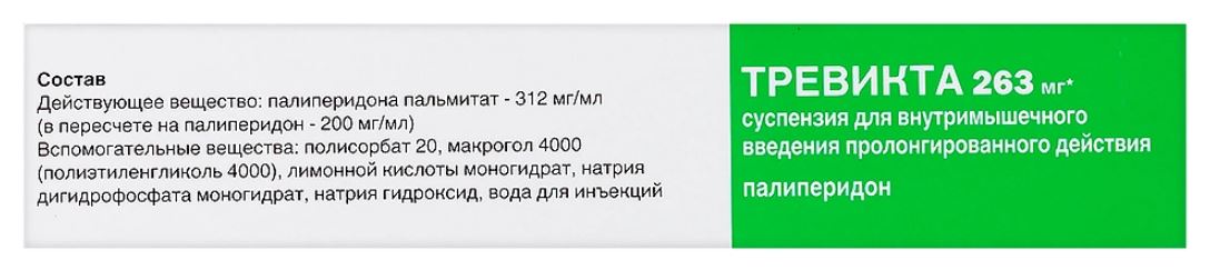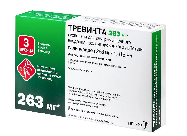 Частота введения препарата ТРЕВИКТА составляет 1 раз в 3 месяца, в отличие от препарата КСЕПЛИОН (палиперидона пальмитат в лекарственной форме суспензия для внутримышечного введения пролонгированного действия, предназначенной для введения ежемесячно). При введении препарата ТРЕВИКТА в дозах, в 3,5 раза превышающих соответствующую дозу в препарате КСЕПЛИОН, препарат ТРЕВИКТА позволял добиться системных уровней палиперидона, схожих с аналогичными значениями, достигаемыми при ежемесячном введении соответствующих доз препарата КСЕПЛИОН. а также при пероральном приеме соответствующих доз палиперидона в таблетках пролонгированного высвобождения.