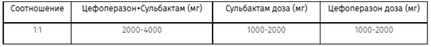 У взрослых цефоперазон+сульбактам рекомендуется применять в следующих суточных дозах: