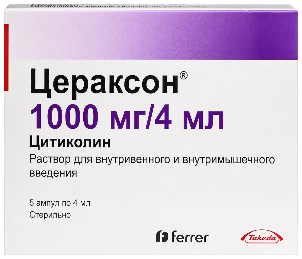В остром периоде инсульта цитиколин уменьшает объем поражения ткани головного мозга, улучшает холинергическую передачу.