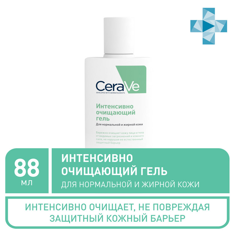 CeraVe Очищающий гель для кожи склонной к жирности интенсивно очищает, удаляя излишки кожного сала, загрязнения и макияж.
