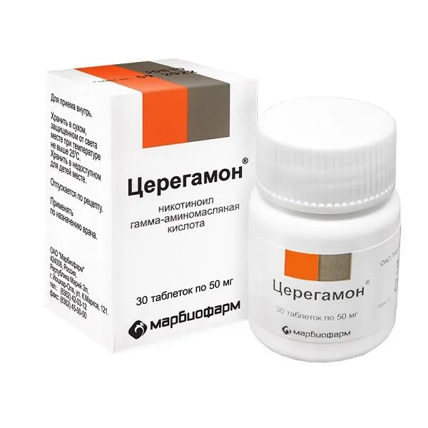 Действующее вещество: никотиноил гамма-аминомасляная кислота - 0,05 г (N-никотиноил-гамма-аминомасляной кислоты натриевая соль).