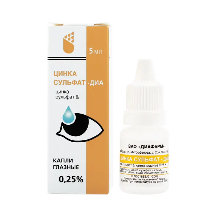 Цинка сульфат оказывает противомикробное, вяжущее, подсушивающее и местное противовоспалительное действие.