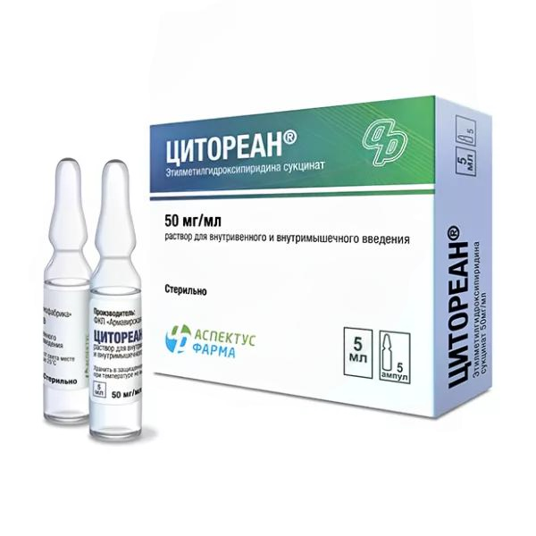 При абстинентном алкогольном синдроме ЦИТОРЕАН® вводят в дозе 200-500 мг в/в капельно или в/м 2-3 раза в сутки в течение 5-7 дней.