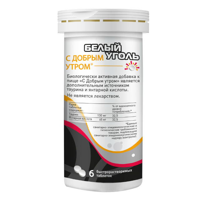 Таурин способствует улучшению энергетического обмена в организме, помогает снять стресс, обеспечивает антиоксидантную защиту организма, особенно при дегидратации. В результате снимается утренняя головная боль, мышечная слабость и разбитость. Способствует улучшению внимания, настроения и работоспособности.