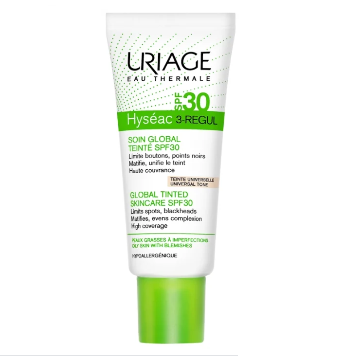 По-настоящему универсальный уход за жирной и проблемной кожей от Урьяж теперь с тонирующим эффектом и защитой от солнца! Урьяж Исеак 3-Регул Уход SPF30 эффективно борется с акне, регулирует выделение себума и сужает поры. Более того, средство обладает матирующим и тональным эффектом. Фильтры SPF30 защитят проблемную кожу от негативного влияния UVA-UVB лучей и появления постакне. Формула Uriage Hyseac 3-Regul Soin Global Teinte SPF 30 с тонирующими компонентами естественным образом выравнивает цвет и текстуру кожи, маскирует несовершенства, придавая эффект пудры.