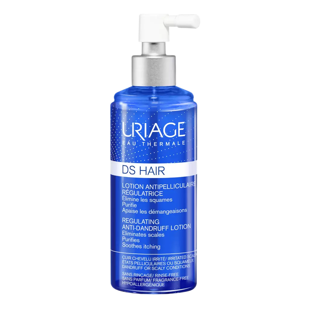 Легкий успокаивающий регулирующий лосьон D.S. Урьяж нормализует состояние кожи головы при зуде, сухости и шелушении. Средство обладает мощным антибактериальным эффектом, благодаря чему подавляет размножение микроорганизмов, вызывающих раздражение и перхоть. Клинические исследования показывают, что при регулярном применении Uriage D.S Lotion Spray Apaisant Régulateur у пациентов с себорейным дерматитом кожи головы на 83% уменьшается образование перхоти. Средство не оставляет жирных следов на волосах и коже.