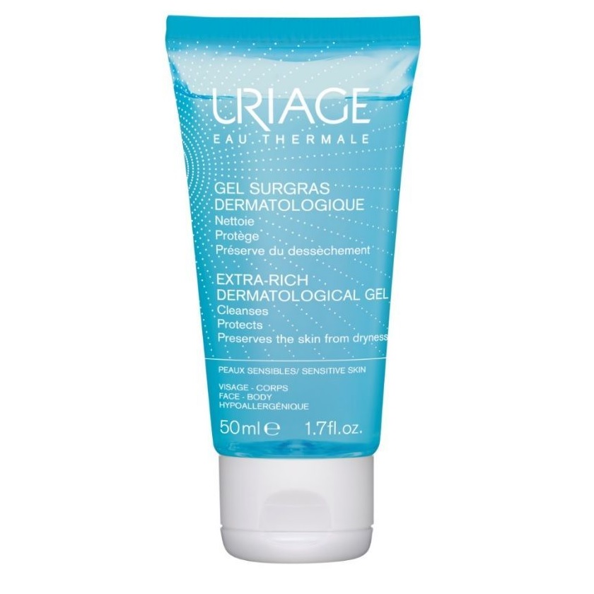 Прекрасное универсальное очищающее средство Uriage Gel Surgras Dermatologique не содержит мыла и обладает физиологическим уровнем рН. Гель бережно очищает, сохраняет гидролипидную пленку, увлажняет поверхность эпидермиса, оставляя ощущение комфорта. Экстрамягкая гелевая текстура с тонким приятным ароматом быстро формирует густую пенку, которая легко смывается.