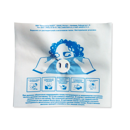 Устройство-маска полиэтиленовая с обратным клапаном для искусственной вентиляции легких разового использования «Рот-устройство-рот» — «ФЭСТ» предназначена для проведения искусственного дыхания методом «рот-в-рот» у взрослых и детей вне медицинских учреждений.