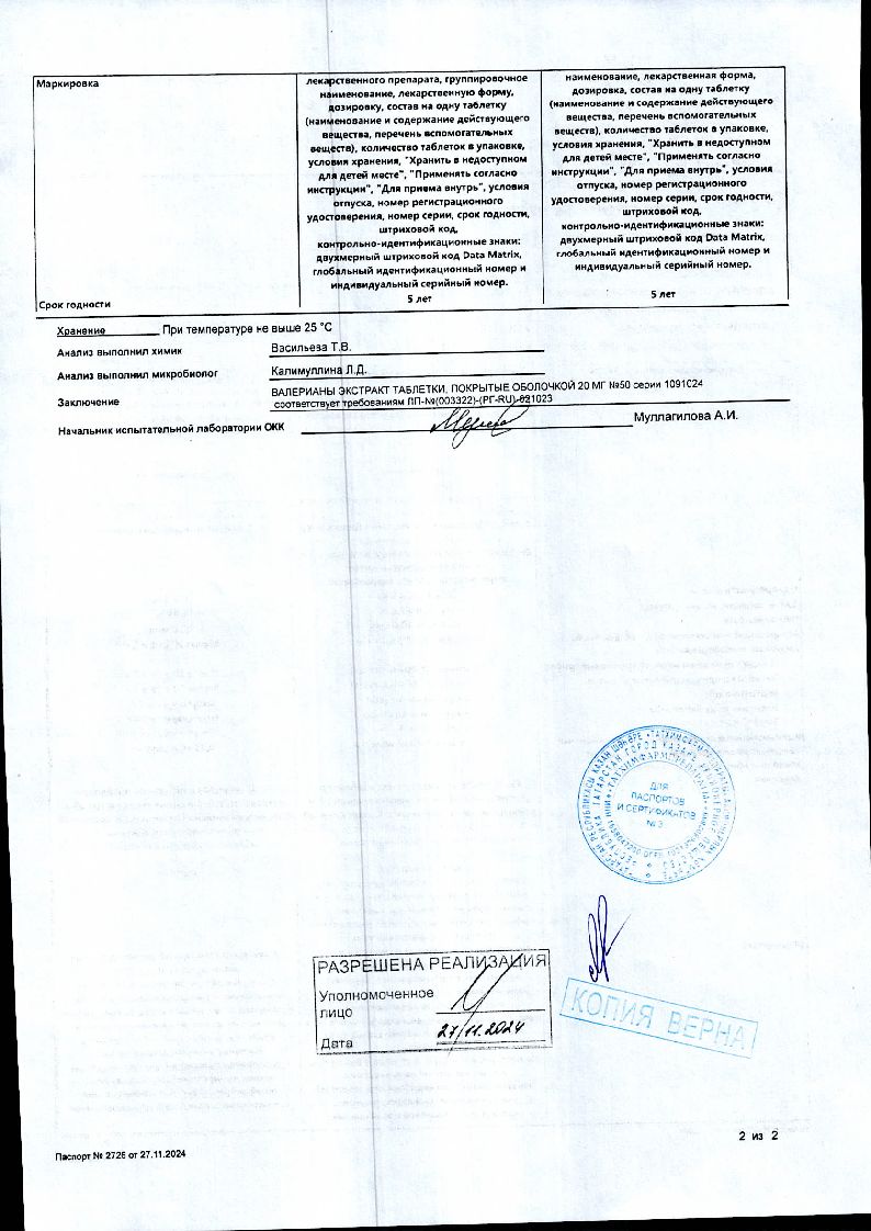 Сертификаты и лицензии “Валерианы Экстракт 20 мг 50 шт таблетки покрытые оболочкой”