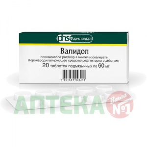Активное вещество: левоментола раствор в ментил изовалерате (валидол) – 60 мг;
