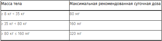 Максимальные рекомендованные суточные дозы отражены в таблице ниже. Применение более высоких доз не рекомендовано.