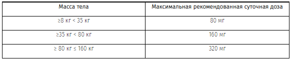 Рекомендуемая начальная доза валсартана у детей и подростков от 6 до 18 лет составляет 40 мг при массе тела ребенка менее 35 кг и 80 мг при массе тела ребенка более 35 кг. Дозу рекомендовано корректировать с учетом снижения АД. Максимальные рекомендованные суточные дозы отражены в таблице ниже. Применение более высоких доз не рекомендовано.