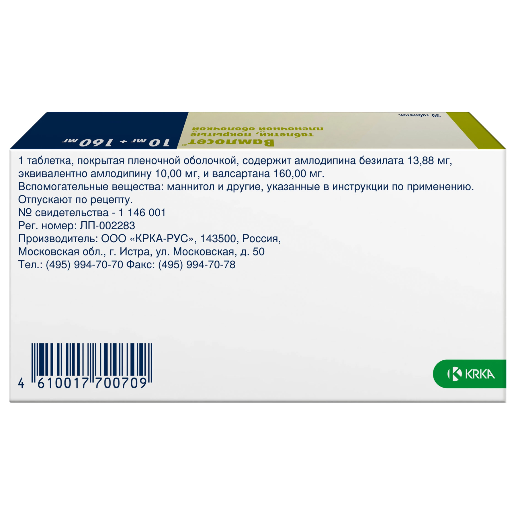 Действующие вещества: амлодипина безилат 13,88 мг, эквивалентно амлодипину 10,00 мг ,Валсартан А, субстанция-гранулы 251,35 мг.