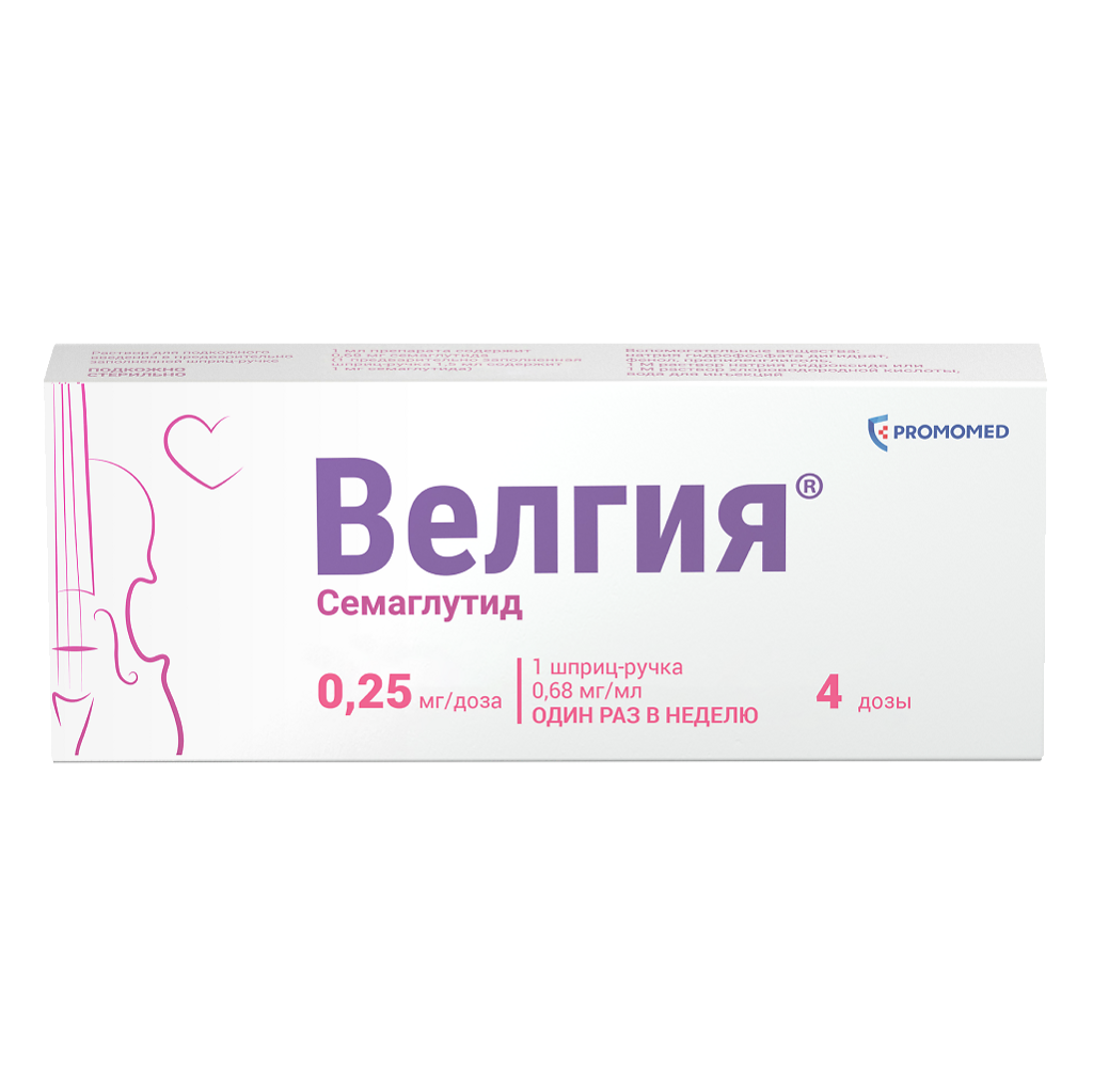 Препарат Велгия® противопоказан детям и подросткам в возрасте от 0 до 18 лет, так как безопасность и эффективность семаглутида у этой возрастной категории не установлены.