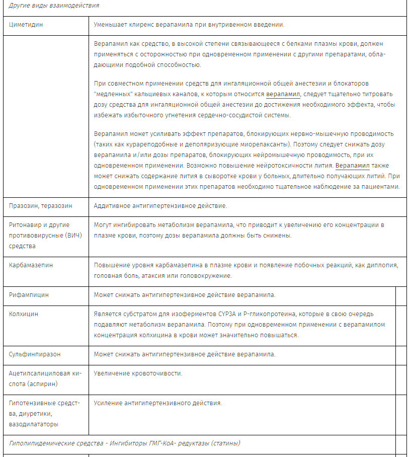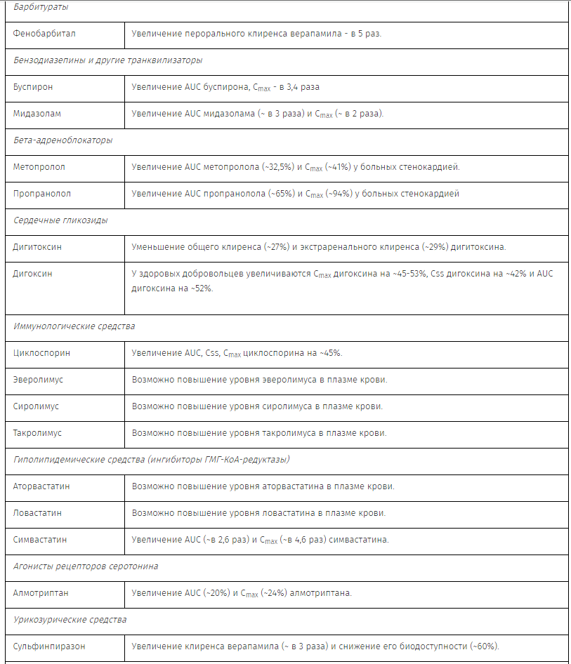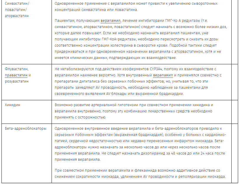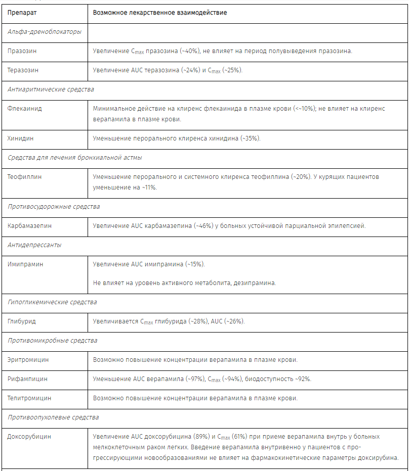 Во избежание нарушений стабильности не рекомендуется разводить Верапамил растворами натрия лактата в пластиковых пакетах из ПВХ. Следует избегать смешивания растворов препарата Верапамил и альбумина, амфотерицина В, гидралазина или триметоприма и сульфаметоксазола.
